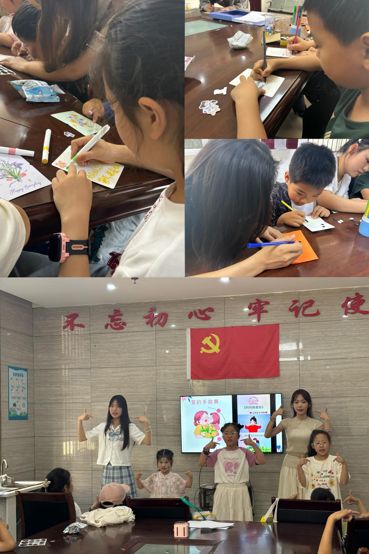 "彩虹萝卜蹲"游戏让孩子们笑声不断,随后"爱的手势舞"教学更让现场暖意融融。在手工DIY环节,8岁的婷婷在立体贺卡上认真写道:"妈妈,等我学会拼音就每天给您发短信"。每一张贺卡都承载着孩子最纯真的心意,他们迫不及待想将这份特别的礼物送给妈妈。