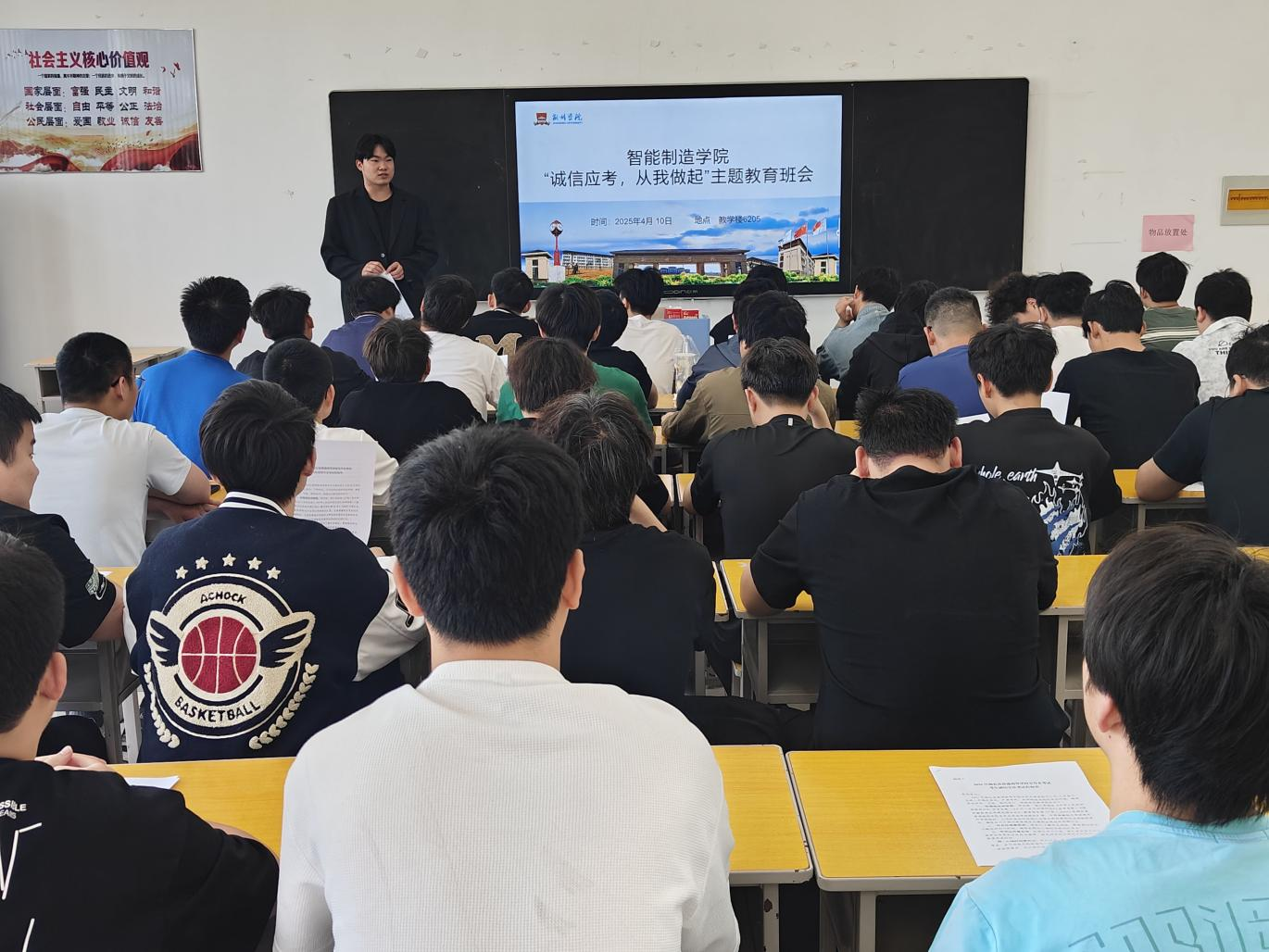 本网讯(通讯员 夏扬倩)为营造风清气正的考试环境,强化学生的诚信意识与自律观念,2025年4月10日,智能制造学院组织了专升本 “诚信应考,从我做起” 主题教育班会。此次班会以线上和线下两种形式开展,由学院辅导员吴昙、夏扬倩主持,全体专升本考生积极参与,反响热烈。