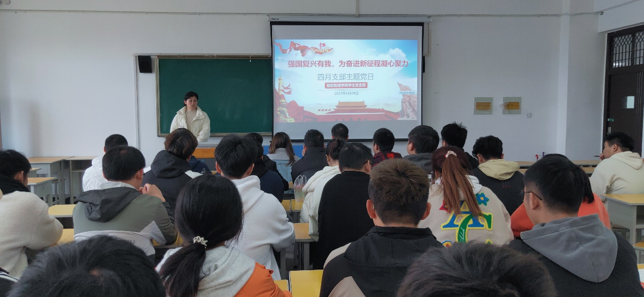 学生党支部开展了以“强国复兴有我,为奋进新征程凝心聚力”为主题的支部主题党日活动,支部全体党员参与本次活动,党总支书记王艳老师主持。