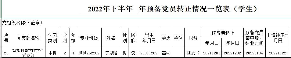 附: 丁思强 同志预备党员拟转正情况一览表