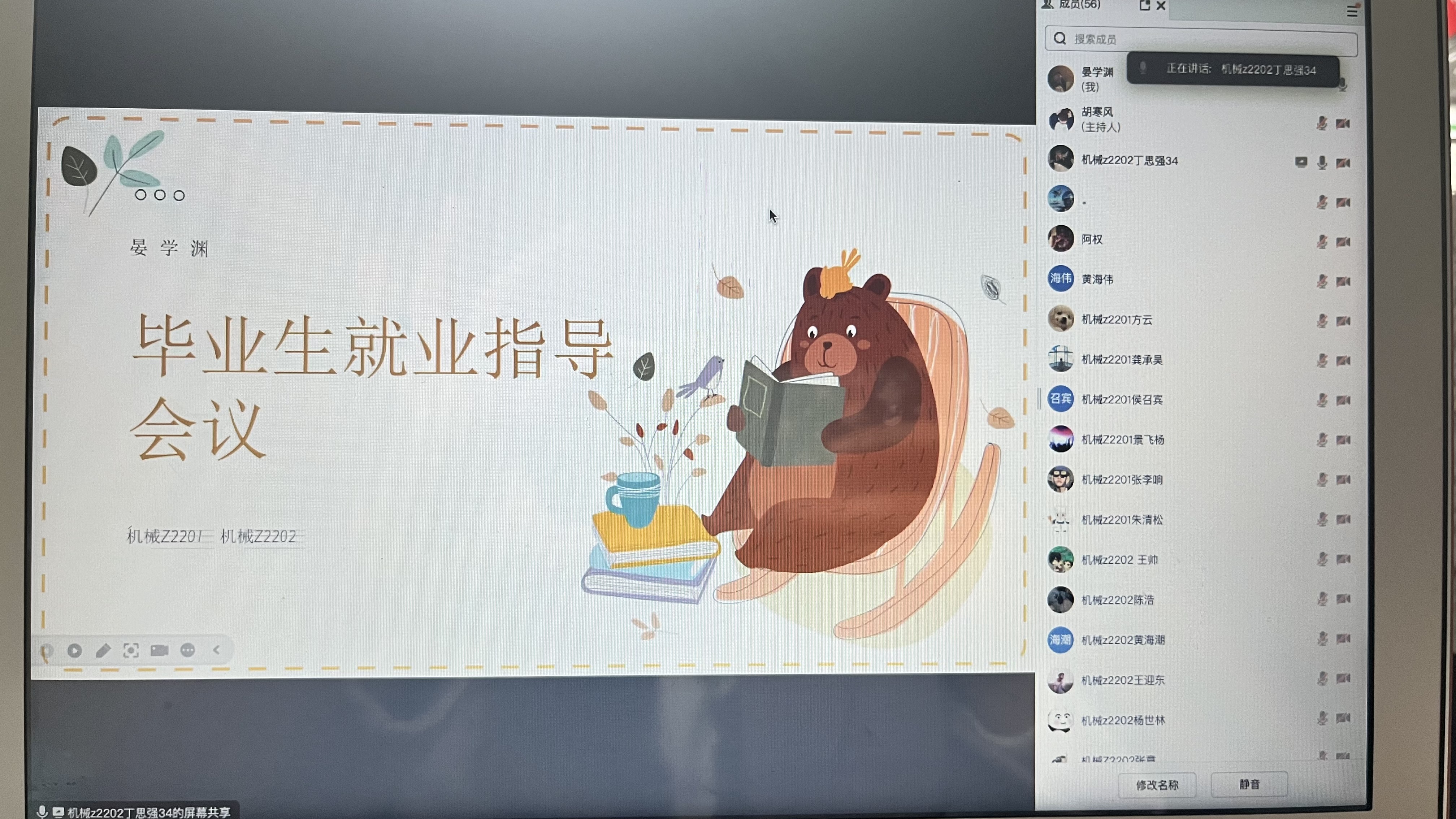 会上,晏老师针对毕业生就业信息方面做了系统的培训。首先是91系统的登录问题,很多同学很久不登录忘记账号和密码,晏老师现场示范如何登录。对于9.1系统就业信息填报,根据招就处下发的文件及资料逐条讲解,晏老师耐心解疑答惑。同学们发弹幕和老师交流,还有学生说很想念老师了,想回学校和老师面对面聊天。