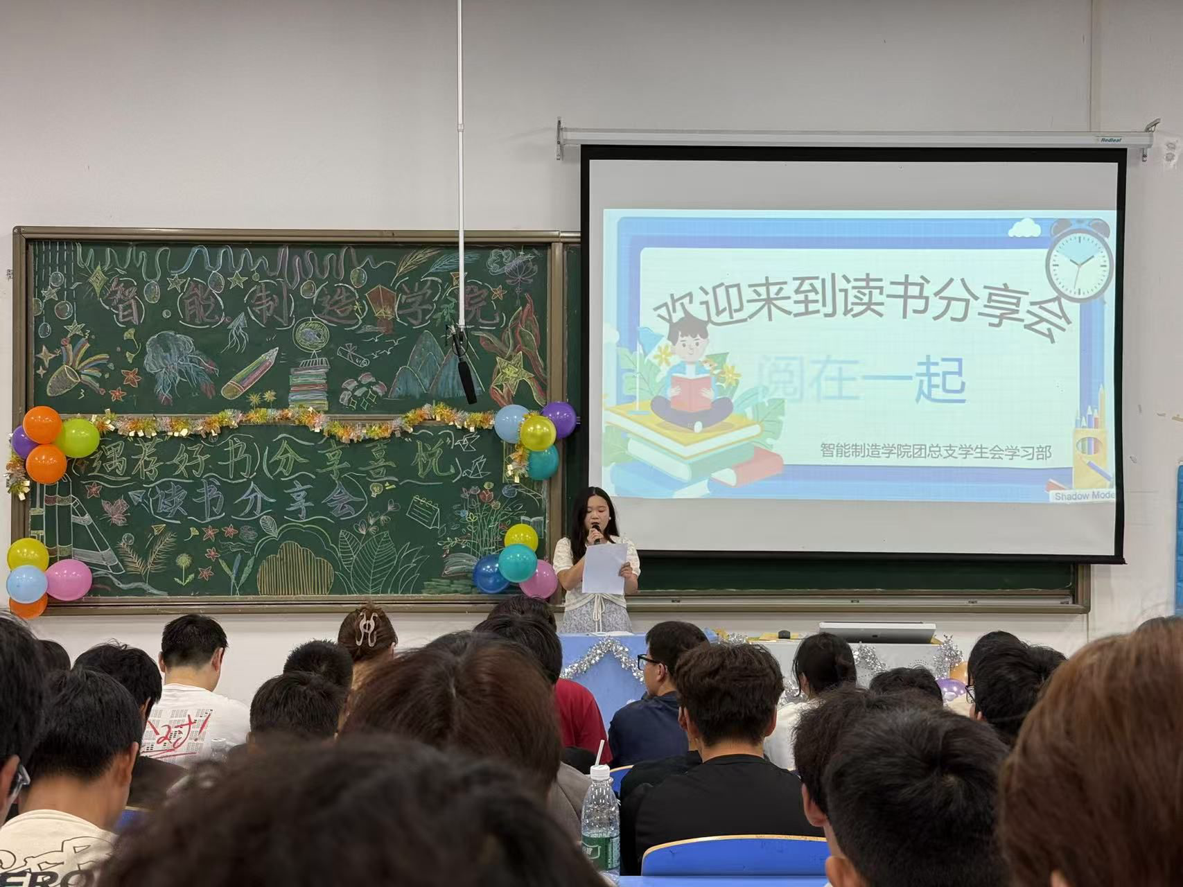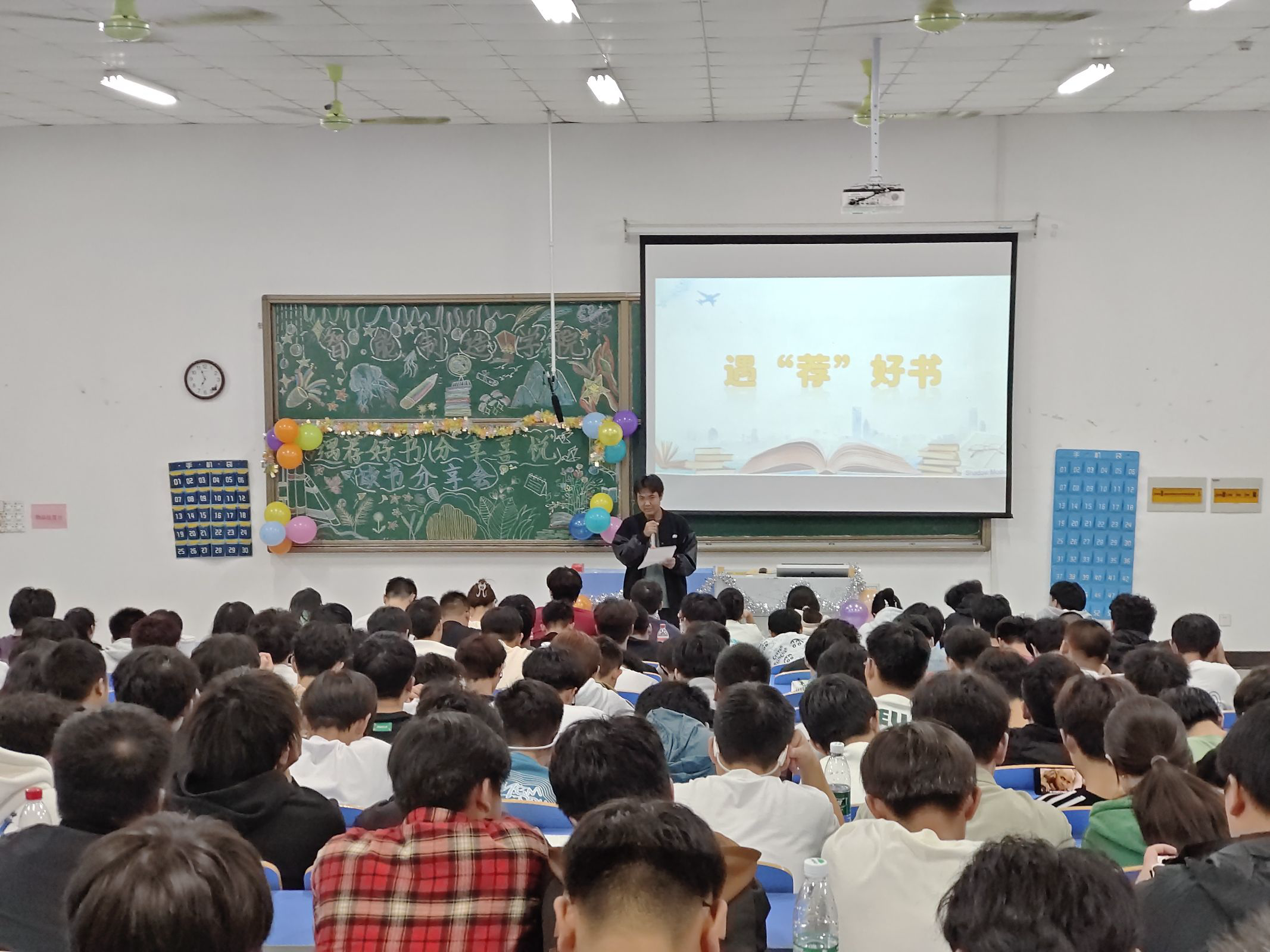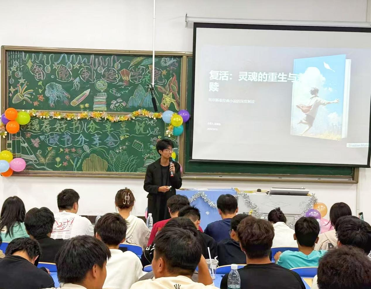 本网讯(通讯员 黄子健)书籍是人类进步的阶梯,为了激发大学生的阅读兴趣,培养深度思考的习惯,丰富同学们的课余生活,在校园内营造浓厚的读书氛围,10月17日晚18:30,智能制造学院在3405教室开展以“遇‘荐’好书、分享喜‘悦’”为主题的读书分享会,此次活动由机械2402班吴桐主持,2024级全体新生参与。