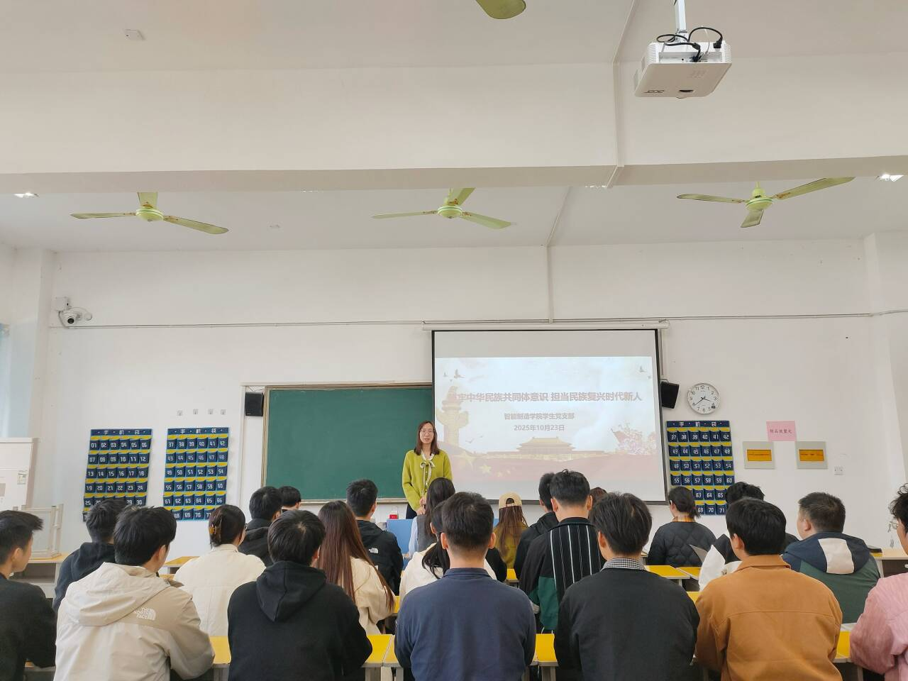 2025年10月23日,智能制造学院学生党支部在6206教室开展“铸牢中华民族共同体意识,担当民族复兴时代新人”主题教育活动。活动由支部书记雷倩主持,支部全体党员参加,通过理论研学、实践互动与使命践行相结合的形式,推动民族团结进步理念与青年担当精神深度融合。