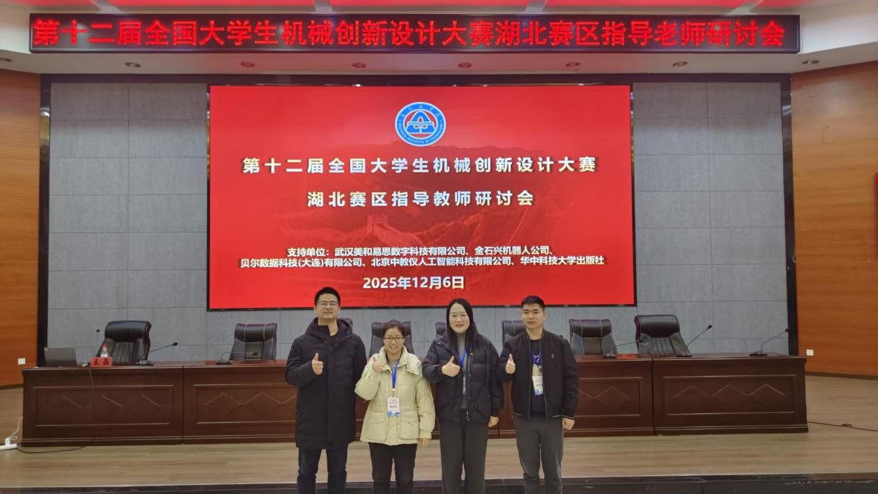 本网讯(通讯员 祝小琴)为精准把握第十二届全国大学生机械创新设计大赛赛事核心要求,提升学科竞赛指导能力,2025年12月6日,WilliamHill中文官方网站智能制造学院副院长樊甜甜带领骨干教师祝小琴、范航、胡飞一行,赴武昌工学院参加第十二届全国大学生机械创新设计大赛湖北赛区指导教师研讨会。本次研讨会议由湖北省大学生机械创新设计大赛组委会主办,武昌工学院承办。会议特别邀请了全国大学生机械创新设计大赛组委会委员、大赛秘书长、西安交通大学王晶教授,全国大学生机械创新设计大赛专家委员会副主任、华中科技大学杨家军教授,湖北赛区组委会常务副主任委员、江汉大学童幸生教授,湖北赛区组委会主任委员、华中科技大学吴昌林教授、国赛金奖学生代表、华中科技大学牛正阳同学作了精彩分享。参会人员包括全省高校机械创新设计大赛的评委、领队、指导教师等。