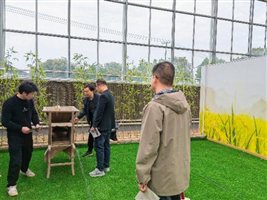 在铜铃岗粮食安全教育研学基地负责人的带领下,调研团队一行参观了研学实景教室,深入了解了我国粮食安全战略、农业现代化进程及乡村振兴实践。基地负责人结合实例,阐述了粮食安全对国家长治久安的重要性,实地实景的展示让老师们对国家农业建设和发展有了更充分的认识,也深感粮食安全教育的迫切性。参观后,双方就持续深入开展校地、校企合作进行了交流。