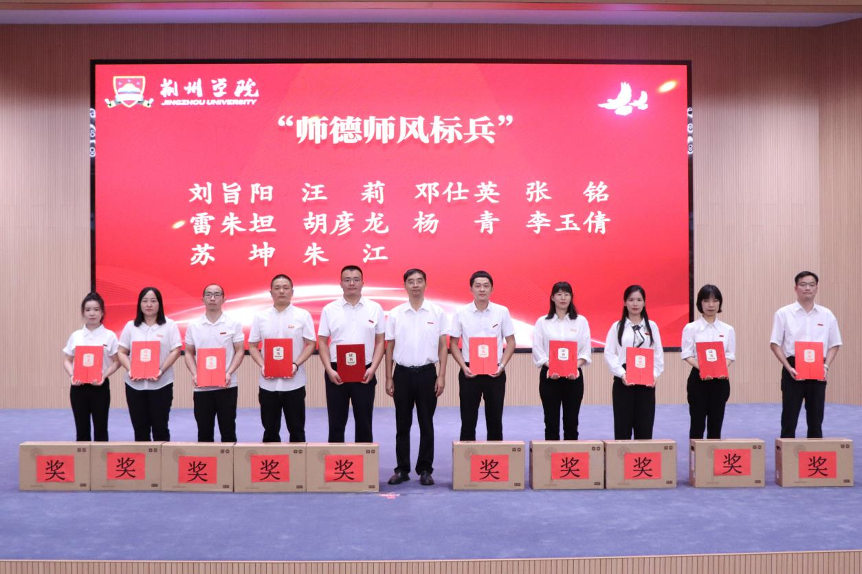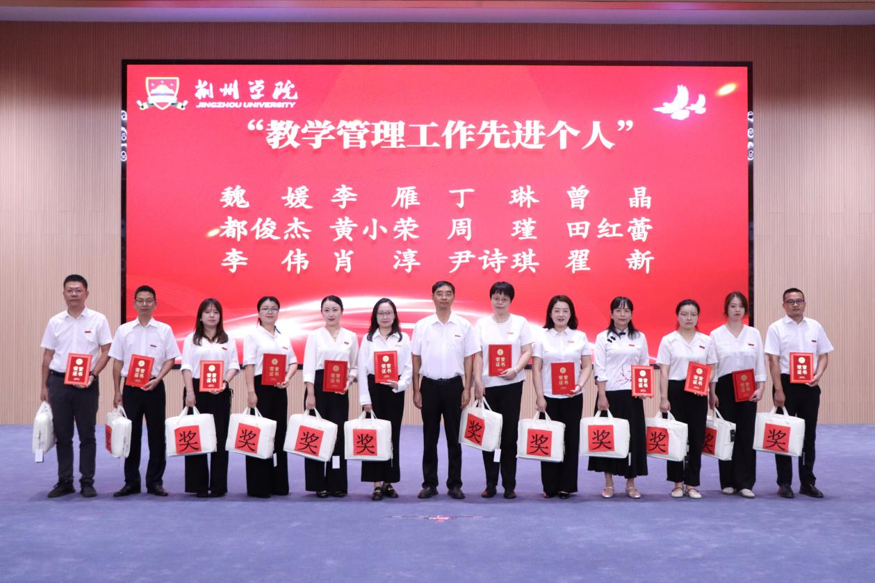 随后,大会依次对各获奖单位与个人进行了表彰,集团领导、学校领导依次为受表彰教师代表颁奖。本次表彰大会对“最美教师”“第二届青年教师讲课比赛”“教学管理工作先进个人”“教学管理工作先进单位”“优秀基层教学组织”“2025届毕业生考研先进单位”“教学质量优秀奖”“师德师风标兵”“文明个人”“文明单位”“校长教学质量奖”等作出表彰。