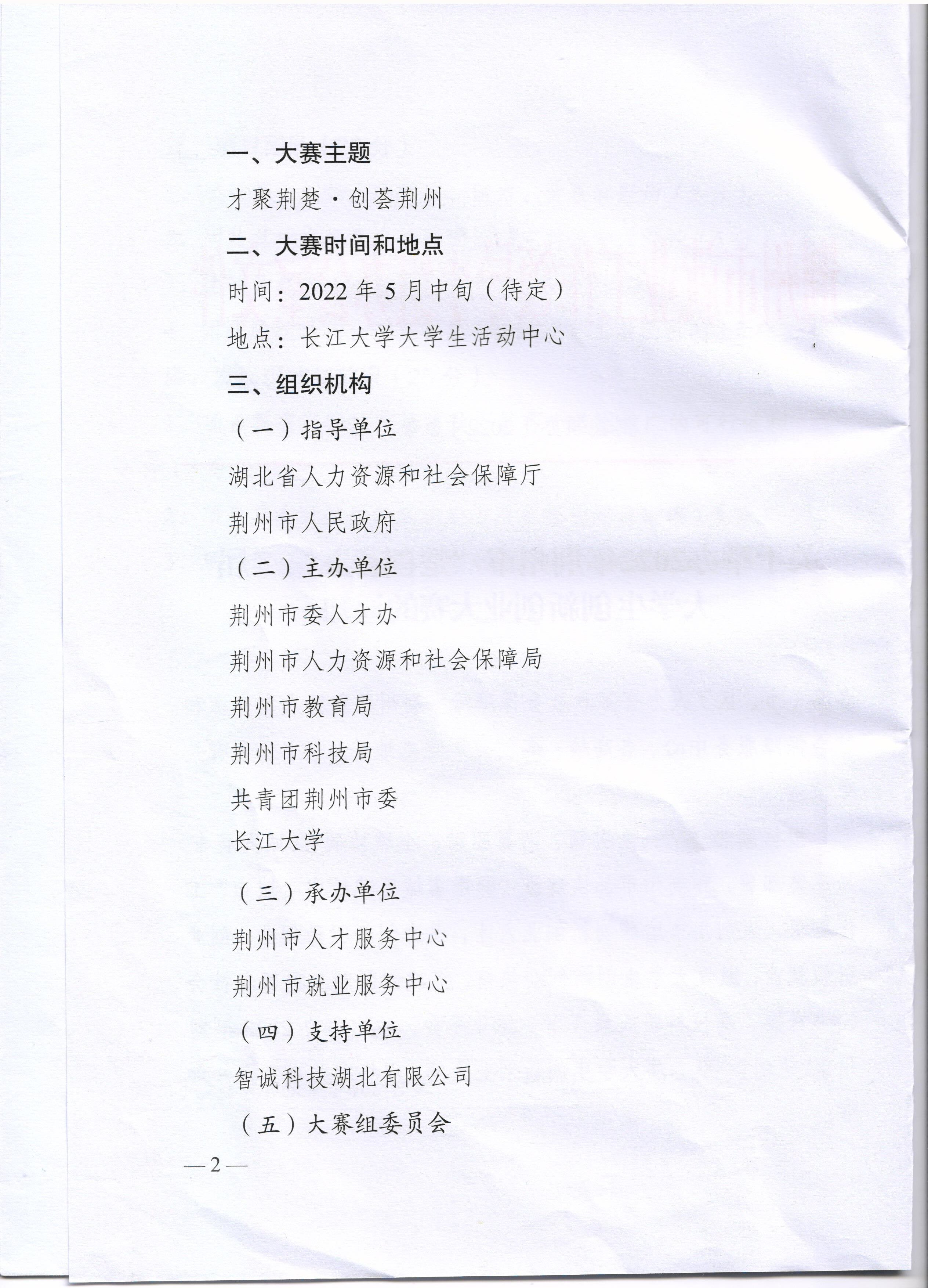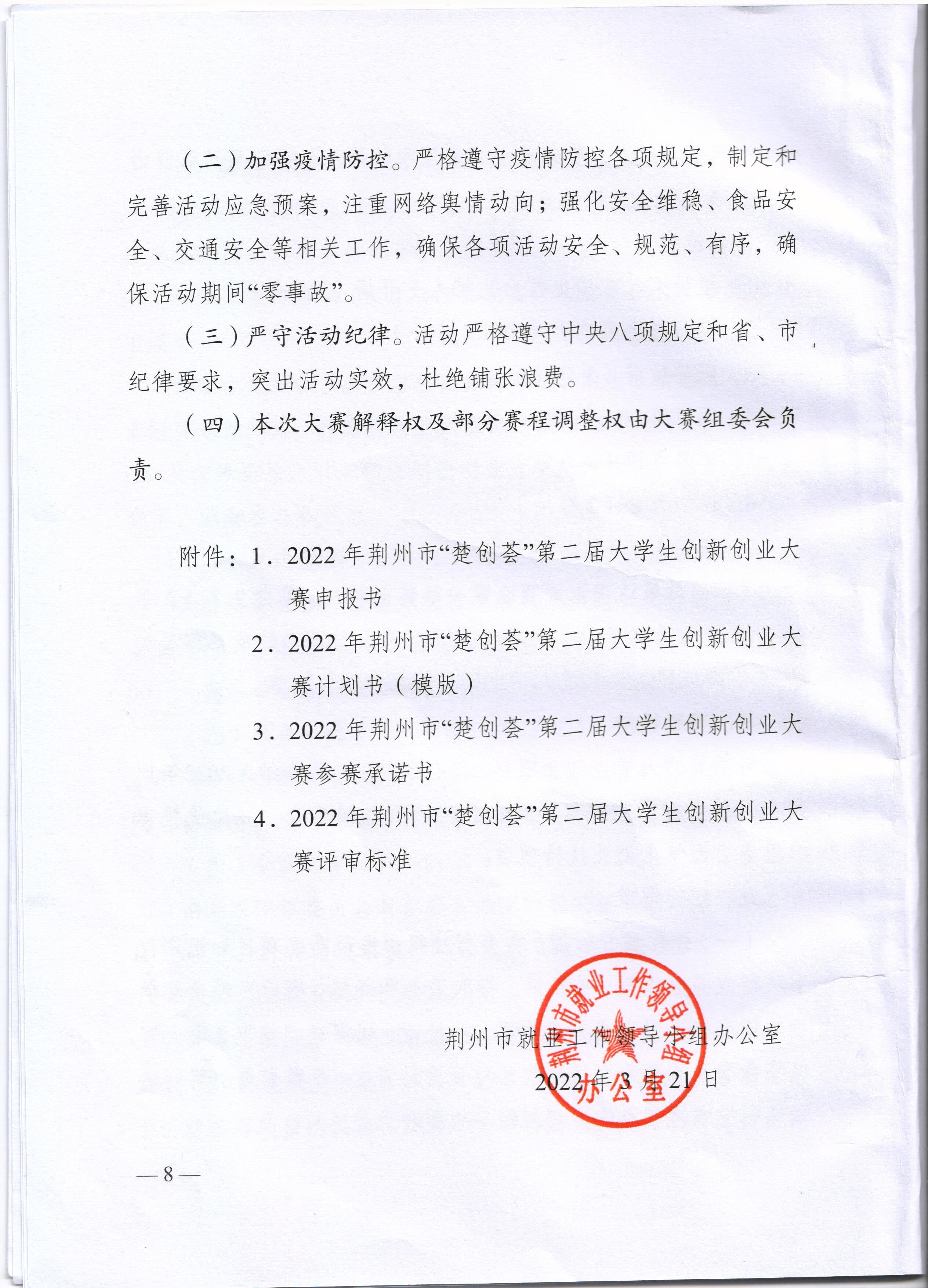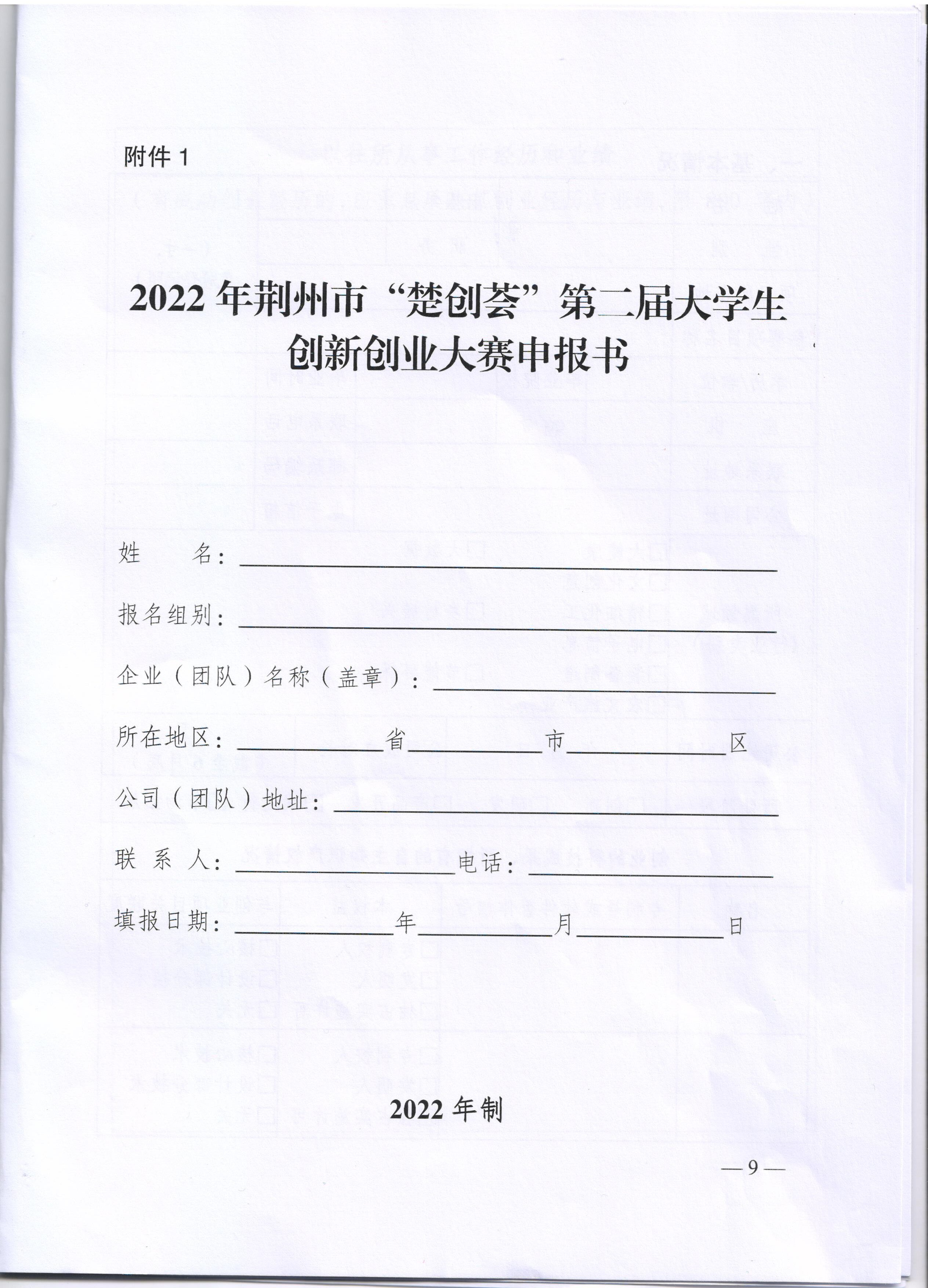 关于举办2022年荆州市“楚创荟”第二届大学生创新创业大赛的通知