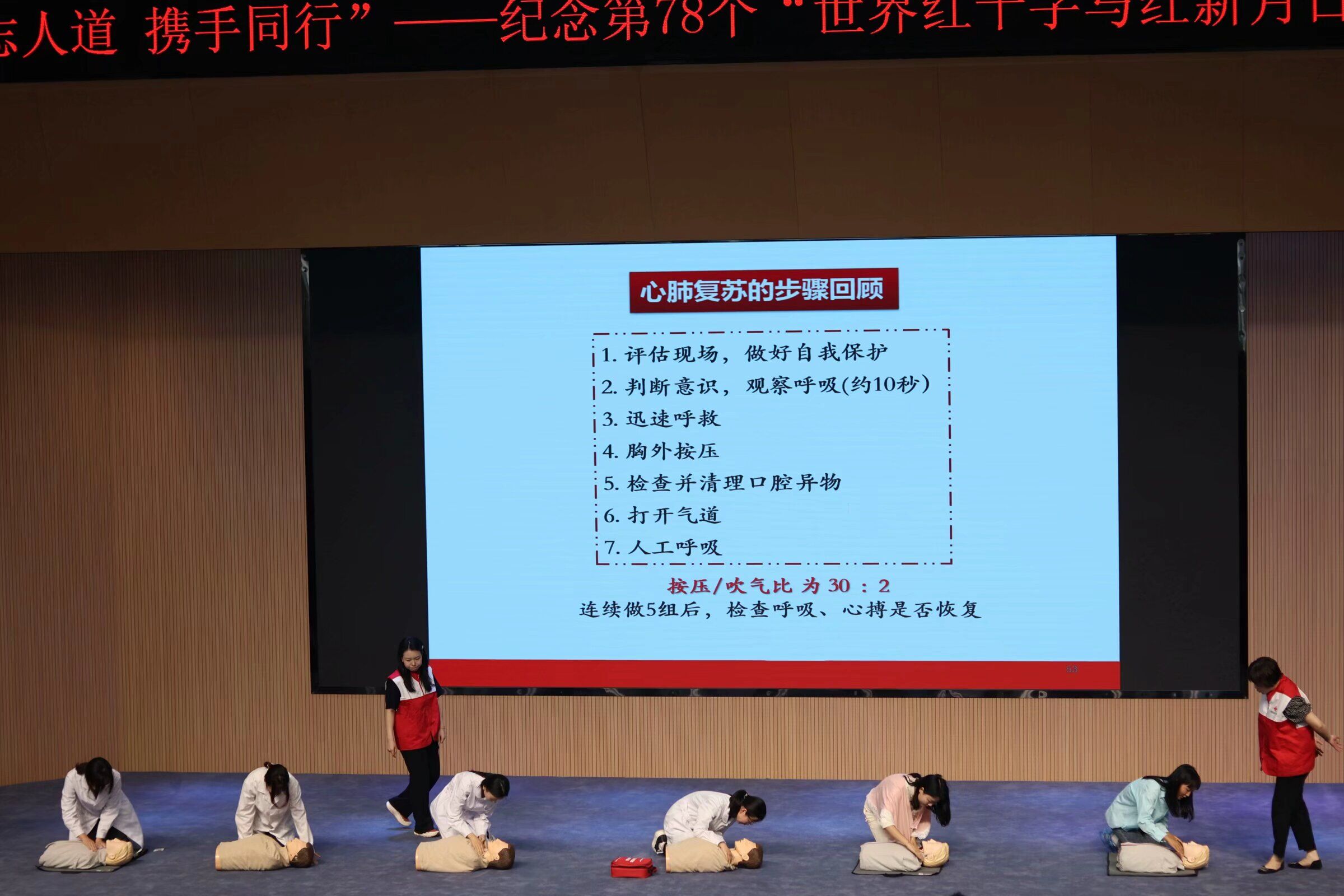 作为博爱周核心环节,荆州区红十字会同步启动“初级救护员培训班”活动,荆州市急救中心培训科科长丁璐通过“理论讲解+模拟实操”形式,系统教授心肺复苏、AED使用、创伤包扎、气道异物梗阻急救等技能。100名学员通过严格考核,获得初级救护员资格证书,成为校园安全的新生力量。