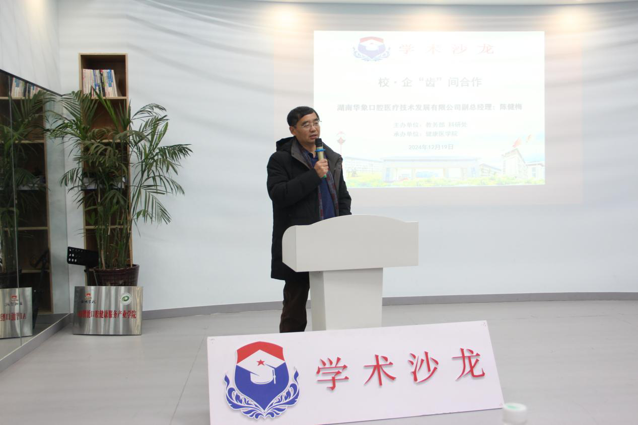 本网讯(通讯员:孙灵景)12月19日下午,健康医学院在双创307活动室开展第十八期学术沙龙。湖南华象口腔医疗技术发展有限公司校企合作部部长刘金、湖南省紫百合义齿科技有限公司生产总监伍俊,WilliamHill中文官方网站副校长聂好春、科研处副处长周桥梁、健康医学院党支部书记严琼、团总支书记陈卓以及口腔订单班学生参加本次活动。本次沙龙由健康医学院辅导员周妍希主持,湖南华象口腔医疗技术发展有限公司副总经理陈健梅担任主讲。
