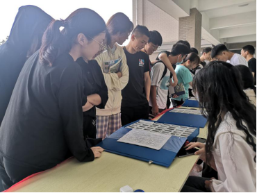 此次展览会向大家展示了各类的矿石和各地质时期常见的生物化石,展览期间,工作人员向参展的同学们发放了岩石的相关资料传单,并现场为参展的同学进行解说。此次展览会展示了自然界千姿百态的矿物岩石,像多彩多姿的花岗岩、晶莹透亮的水晶、青葱翠绿的孔雀石、釉质光滑的青金石等等。也向大家展示了三叶虫化石、狼鳍鱼化石、震旦角石等较为熟知的化石。这些形态各异的矿物以及化石生动地向同学们诉说它们在漫长的地质历史时期,在自然界中所形成的原因和它们自身的特点。石以砥焉,化钝为利;它们以不同的姿态,诉说着岁月的往事,记录着沧海桑田的过往。一件件标本,一颗颗化石紧紧吸引着同学们视线,不少同学在参观过程中详细记录,并拿起手机拍下一张张珍贵的照片。参观过程中,工作人员还组织参展同学增加了有奖问答环节,既巩固了大家参展的学习成果,又给同学们留下了纪念。