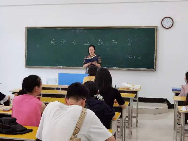 为扎实推进学院新学期各项教学工作有序开展,8月28日下午,外国语学院召开2022-2023学年第一学期新学期教学工作会议。院长魏春霞、副院长王浩及全院专任教师参加会议。会议分大学英语组和英语专业组两个会场举行。