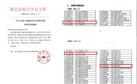 【新闻快讯】我校学子在第十三届全国大学生数学竞赛湖北赛区中创新高
