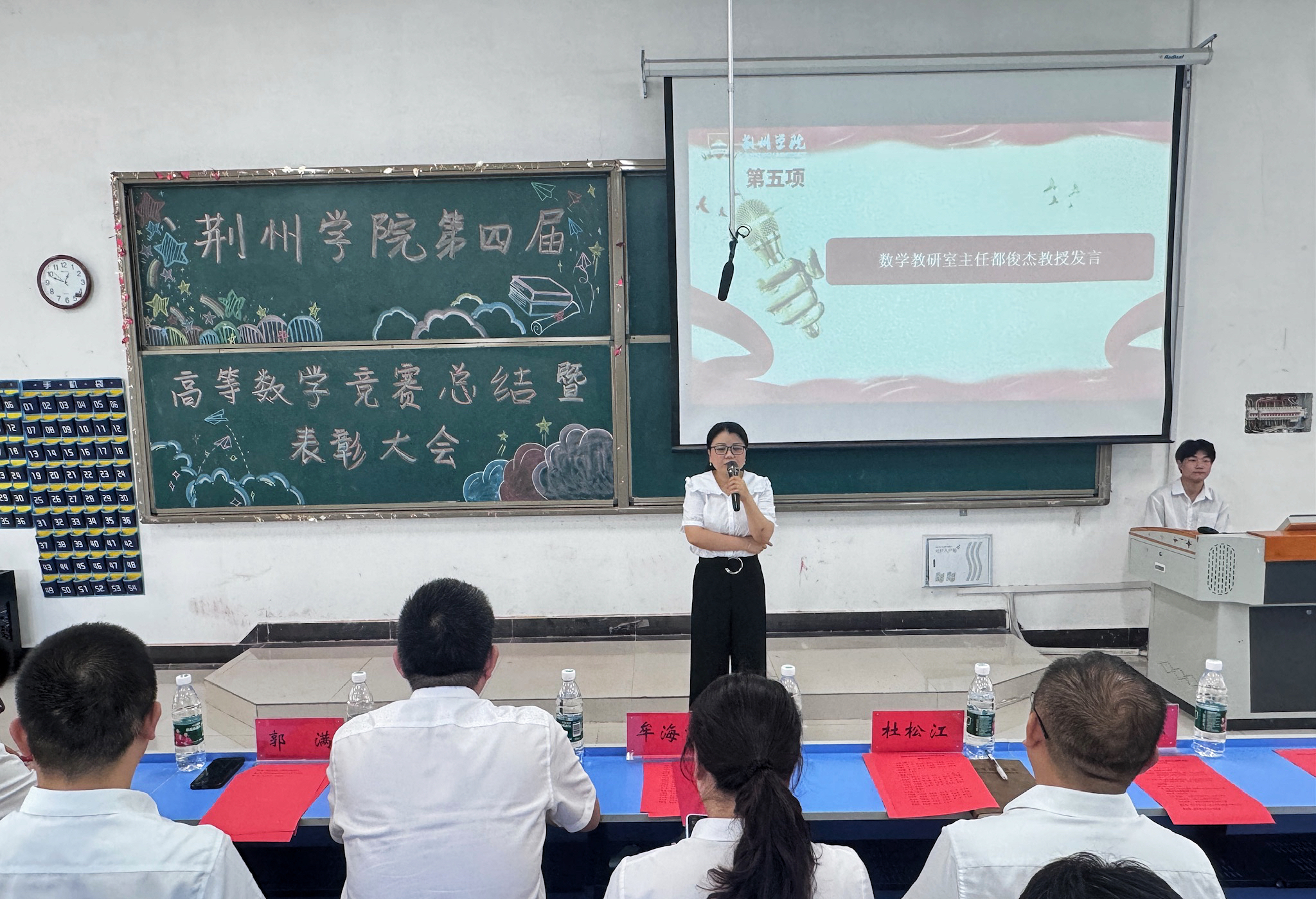 紧接着,教研室主任都俊杰对获奖学生表示祝贺,勉励全体学生以此为起点,挑战更高舞台。她强调竞赛经历是宝贵的成长契机,鼓励学生在数学领域坚持探索,追求卓越。