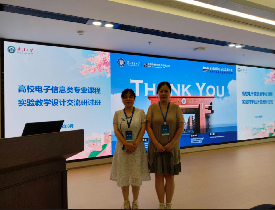 (本网讯 王锦莉)为推动高等教育高质量发展,聚焦电子信息类专业课程实验教学的设计与实践,提升高校教师在该领域的教学能力与创新水平,8月30日-31日,由全国高校电子信息类专业课程实验教学案例设计竞赛组委会、武汉大学、湖北省高等学校电子信息类专业实验教学研究会共同举办的2025年第三期高校电子信息类专业课程实验教学设计交流研讨班,在武汉大学电子信息学院成功举办。我校信息工程学院组织王锦莉、谭敏两位骨干教师参加了此次研讨班,与来自全国多所高校的专家学者、一线教师共同探讨实验教学新路径、新方法。