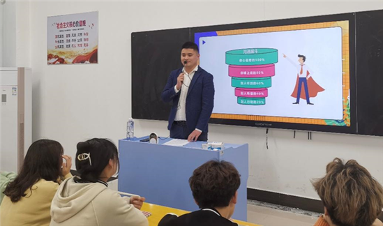 信息工程学院辅导员赵伟军以《提高大学生人际交往与沟通能力,促进大学生心理健康》为题,围绕“人与人沟通的技巧”、“拉近感情的重要性”、“了解并提高同理心”几方面内容,对同学们进行解答。赵老师从人际交往的涵义切入主题,以真实、有说服力的案例,强调了学生人际交往的重要性,接着再以人际吸引原则与个人特征,向同学们解释如何进行人际沟通。详细介绍人际关系的影响因素,如外貌、相似、相邻、互补等因素会对大家在人际关系交往中带来影响。
