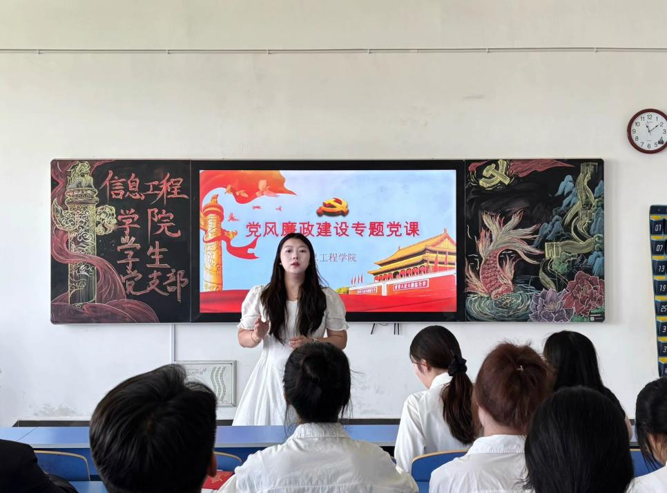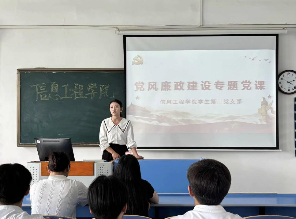 本网讯(通讯员 徐娣)为深入贯彻习近平总书记关于党风廉政建设的重要论述,扎实推进学校党风廉政建设工作,营造风清气正的教育生态,信息工程学院于2025年5月16日在3503教室,开展了以“心守党纪,行践廉风”为主题的党风廉政建设专题党课,我院全体教师及在校学生党员参加。