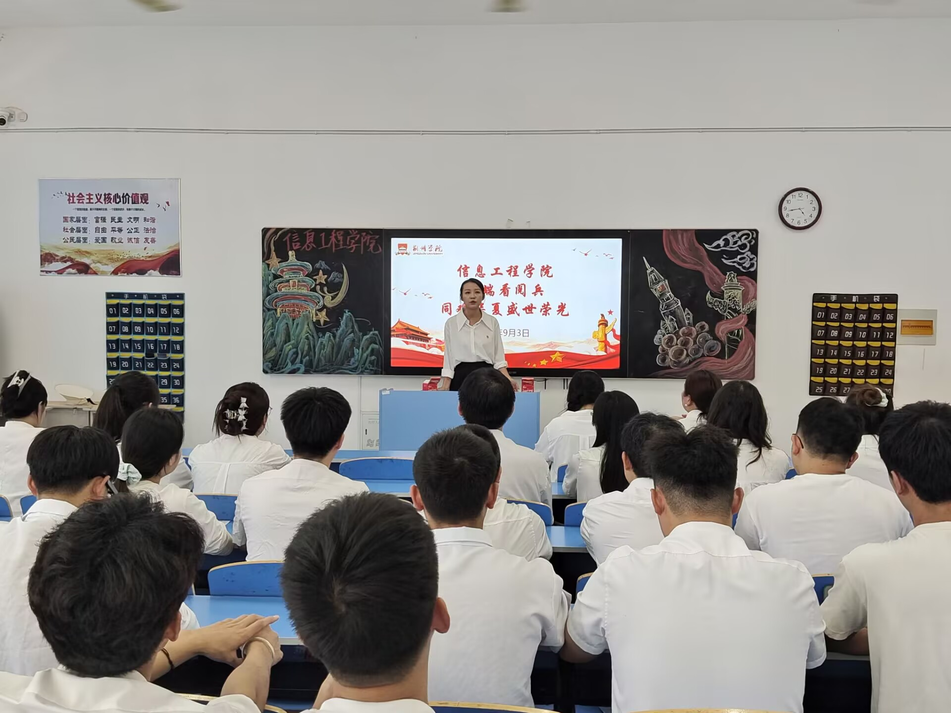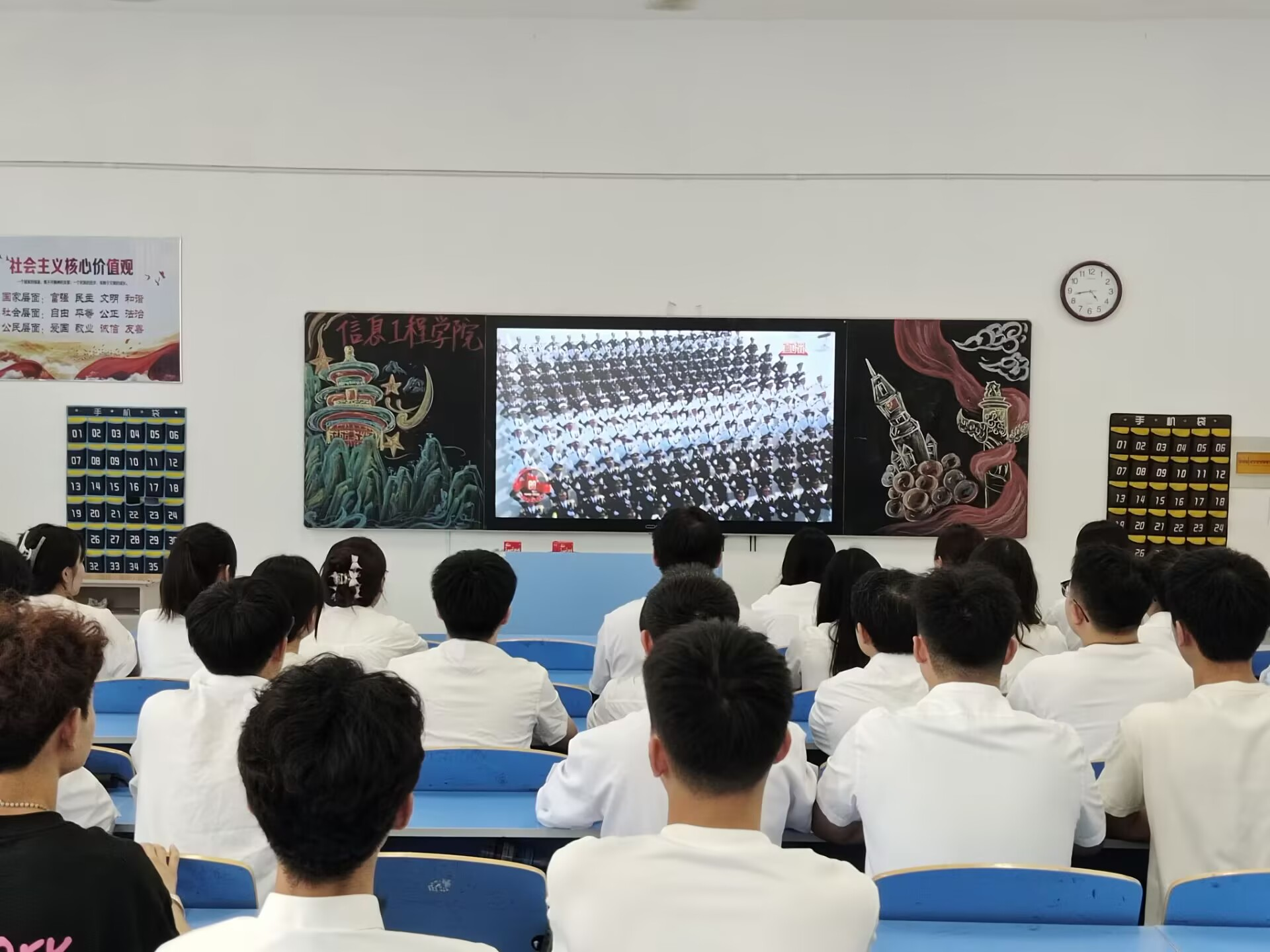 本网讯(通讯员 杜禄珍)为铭记历史、缅怀先烈,传承伟大抗战精神,凝聚奋进力量,信息工程学院党总支于2025年9月3日开展主题教育活动。学院全体教师及在校学生党员在4402教室集中观看纪念中国人民抗日战争暨世界反法西斯战争胜利80周年大会直播,非在校党员通过线上平台同步参与观看学习。