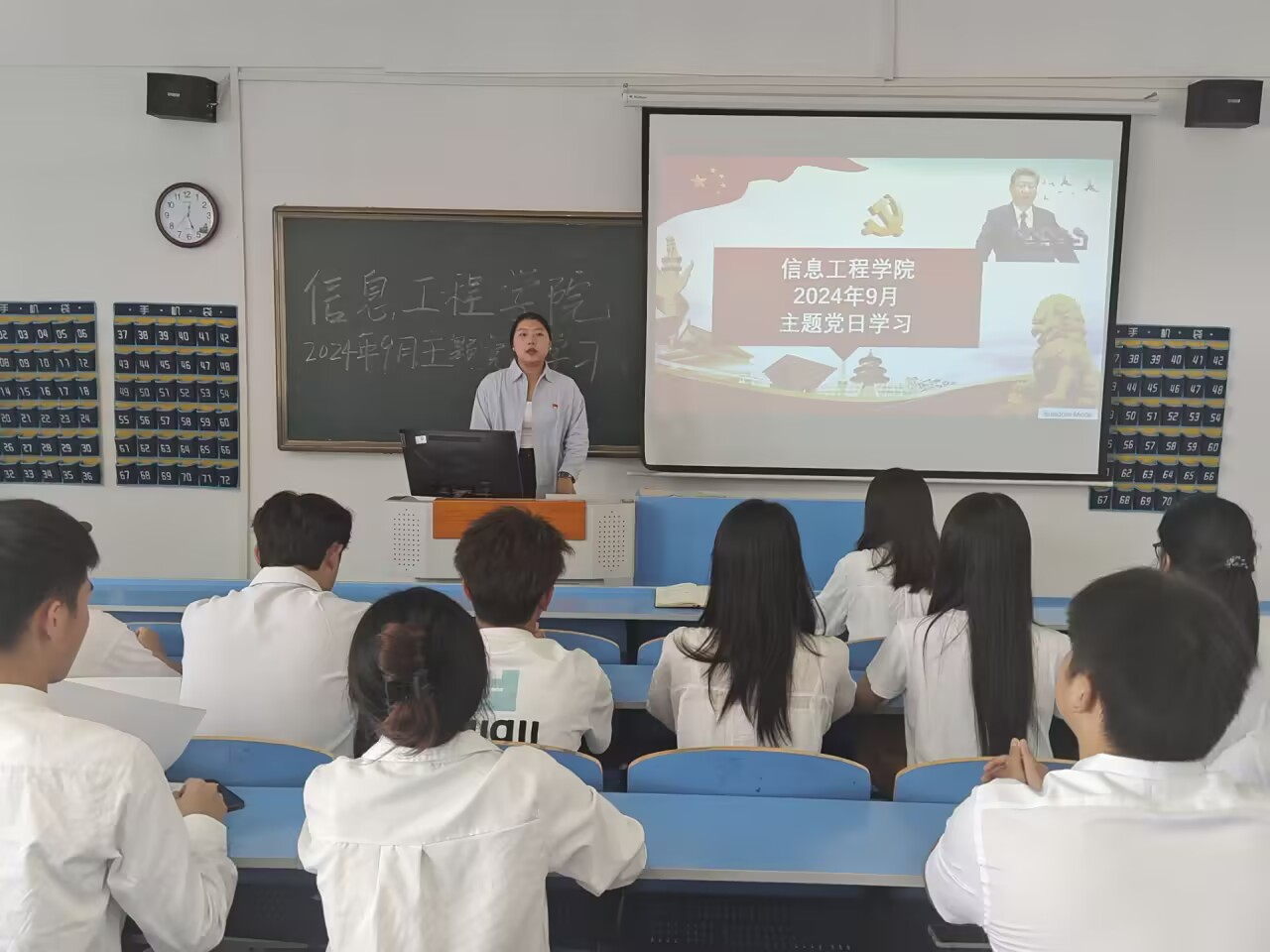 本网讯(通讯员 陈雪)9月27日,信息工程学院党总支在6505教室组织开展了9月政治理论学习与支部主题党日活动,我院全体教师及在校学生党员参加了本次学习活动。