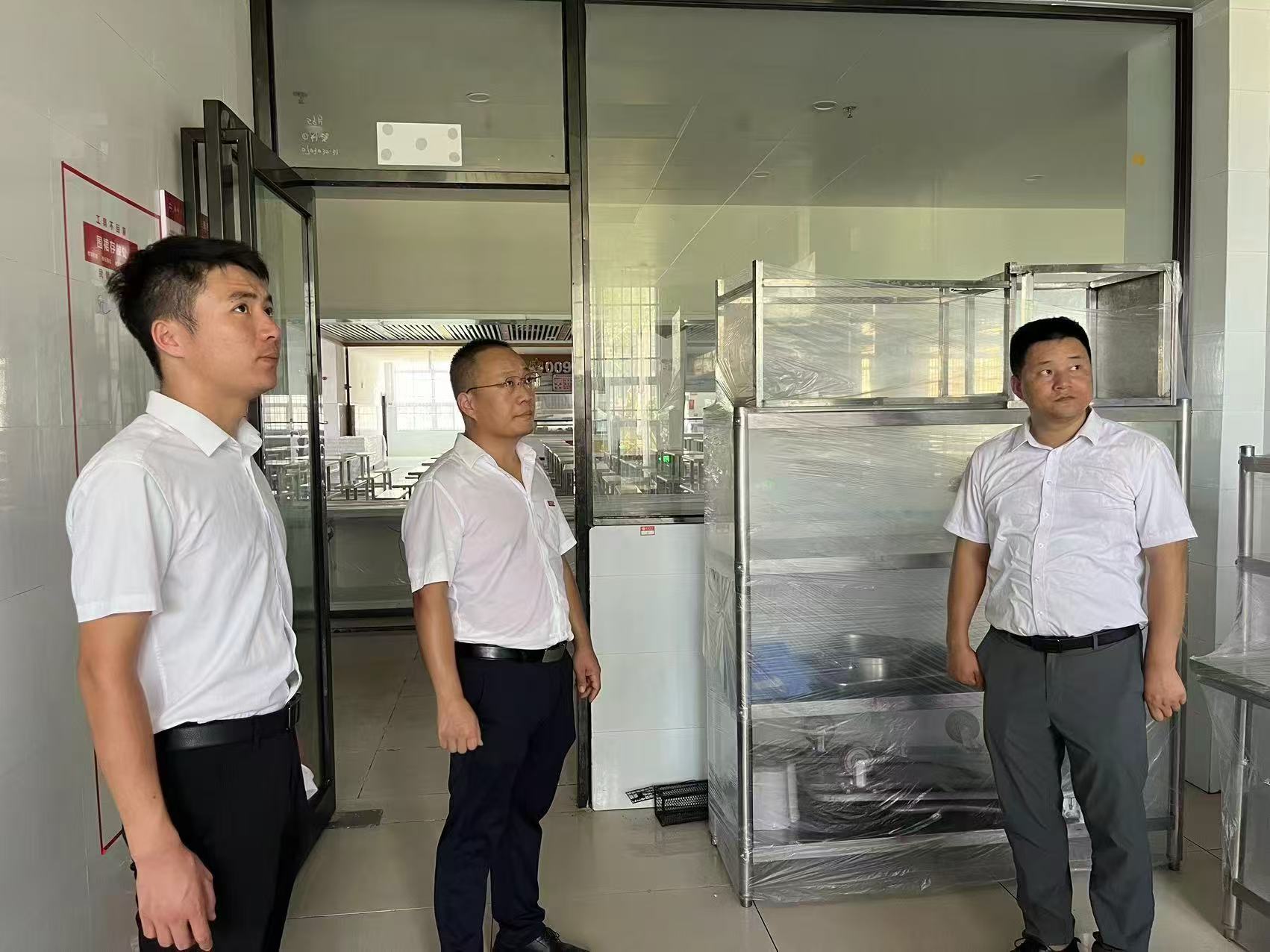 随后,检查组重点检查了餐厅设施设备的准备情况。从冷藏冷冻设备到烹饪器具,从餐具消毒柜到学生就餐区的桌椅,每一环节都进行了细致入微的检查。付校长强调,开学前必须完成所有设施设备的调试工作,确保开学后能以最佳状态投入使用,为师生提供优质的餐饮服务。