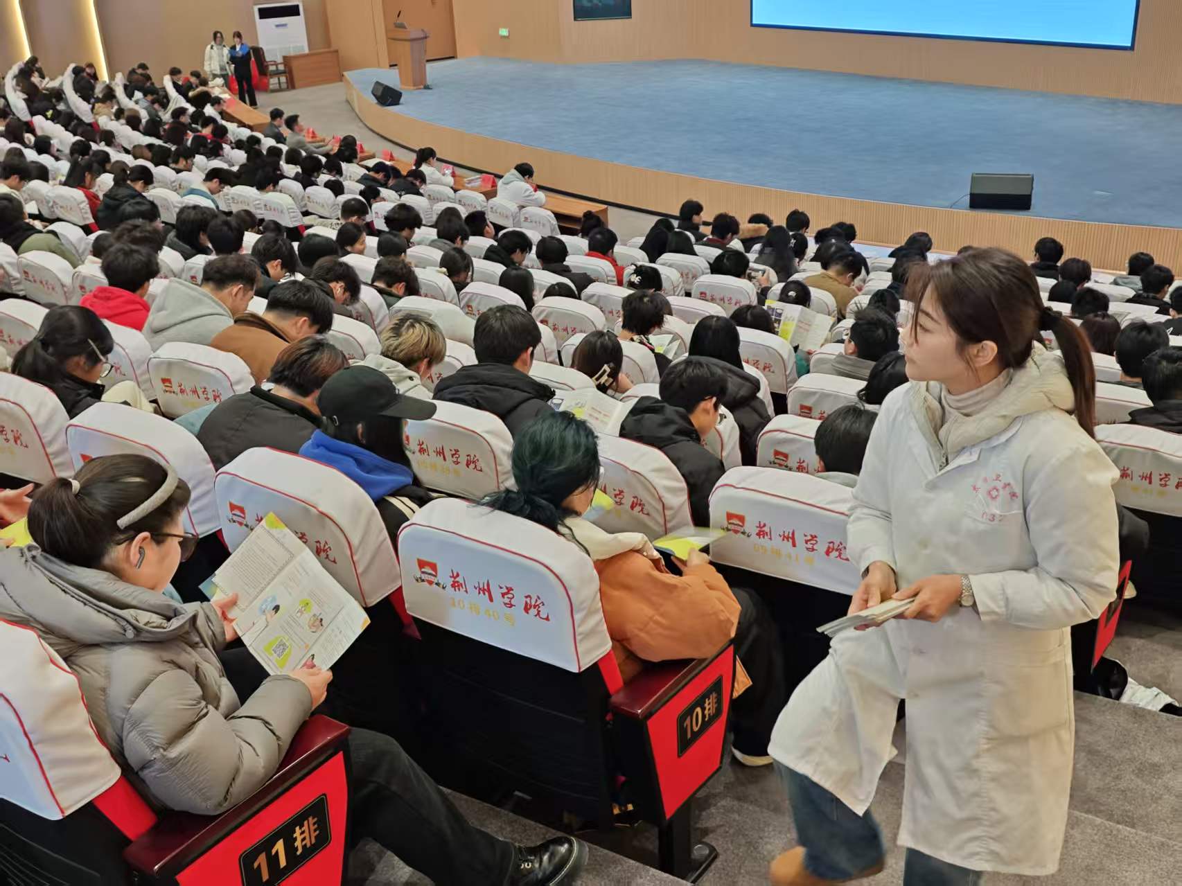 下午2.30分,专题讲座在学院学术报告厅正式拉开帷幕。太湖港管理区卫生院医生结合多年临床经验,围绕结核病的病理特征、传播方式、临床表现及科学防治措施进行了系统讲解。医生特别强调了校园环境中结核病防控的重要性,详细介绍了“早发现、早诊断、早治疗”的关键环节,并就如何保持良好的卫生习惯、增强自身免疫力等方面给出了具体建议。讲座内容通俗易懂、贴近实际,在场师生认真聆听,不时记录要点。
