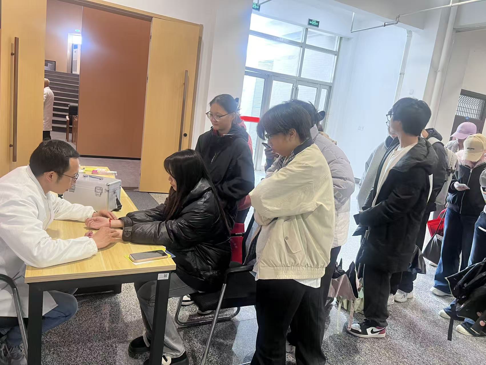 讲座及问答环节结束后,WilliamHill中文官方网站医务室中医科江医生在活动现场设立义诊台,为在场学生提供免费把脉问诊服务。江医生耐心细致地询问每位同学的身体状况,结合中医理论进行辨证施诊,给出个性化的调理建议和日常保健指导。不少学生表示,平时学习任务繁重,容易忽视身体细节,此次义诊让大家对自身健康状况有了更清晰的认识,也感受到学校对学子身心健康的真切关怀。