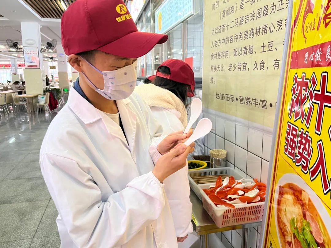 此次活动针对锦康餐厅浓汁烧档口、千之华餐厅女王水煮鱼烤鱼饭档口的食品卫生、厨房卫生、菜品质量进行了深入的调查与讨论。学生会成员们深入餐厅内部,实地查看了餐厅的卫生,菜品制作过程并详细记录,确保同学们拥有一个良好的就餐环境。伙食管理委员会成员对此次活动表示肯定,同时提出各餐厅要抓好餐具消毒关,责任到人,做到无遗漏并确保消毒质量。