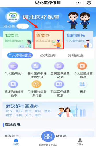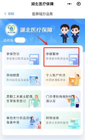 1、微信搜索“湖北医疗保障”小程序,首页点击“我要办”,选择“参保暂停”。