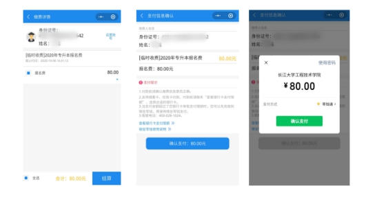 经审核通过,您已成功报考长江大学工程技术学院,请通过长江大学工程技术学院官方微信公众号进行缴费(唯一缴费渠道)。关于专升本相关信息均以长江大学工程技术学院招生处网站公布为准,谨防上当受骗。预祝金榜题名!