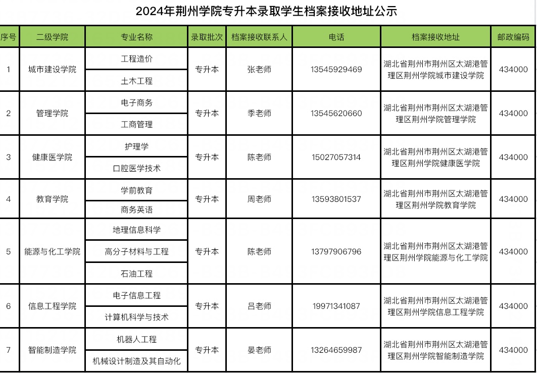 2024年专升本录取学生档案接收地址公示